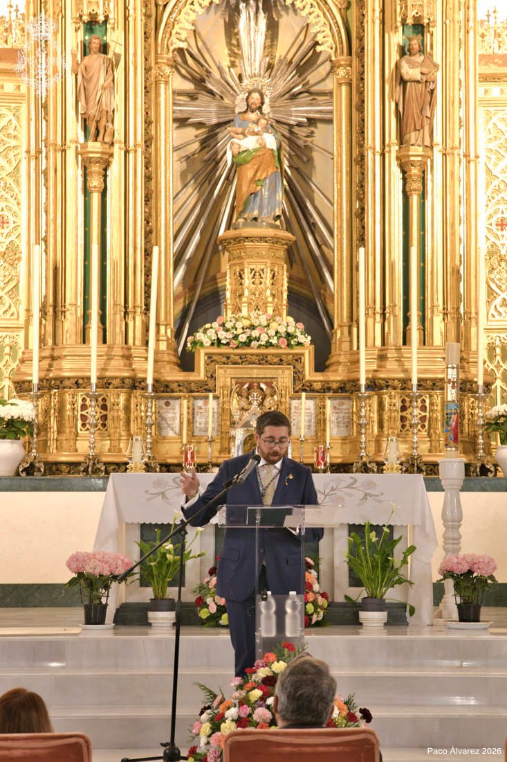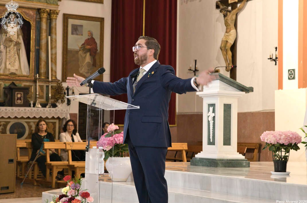 Sábado 25 de abril a las nueve de la noche, con lleno completo, D. Francisco Caro García ha ofrecido su Pregón de las Glorias de María este 2026, siendo presentado por D. Antonio Javier López Gómez (Hno. Mayor de la Hdad. Sacramental y del Redentor Cautivo).