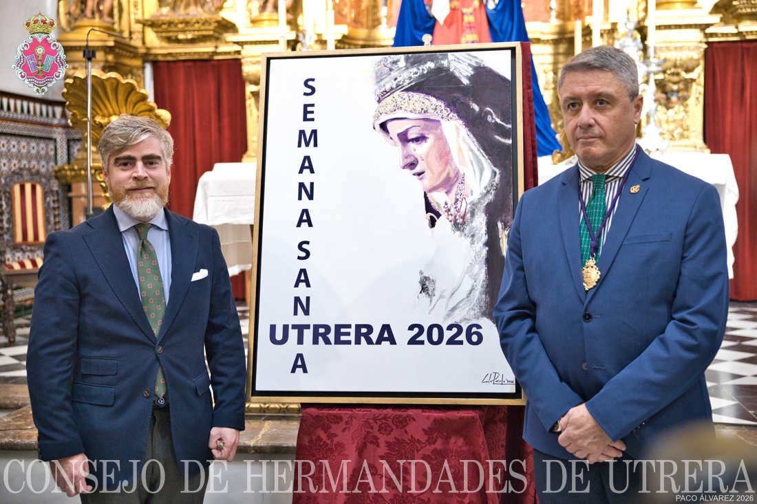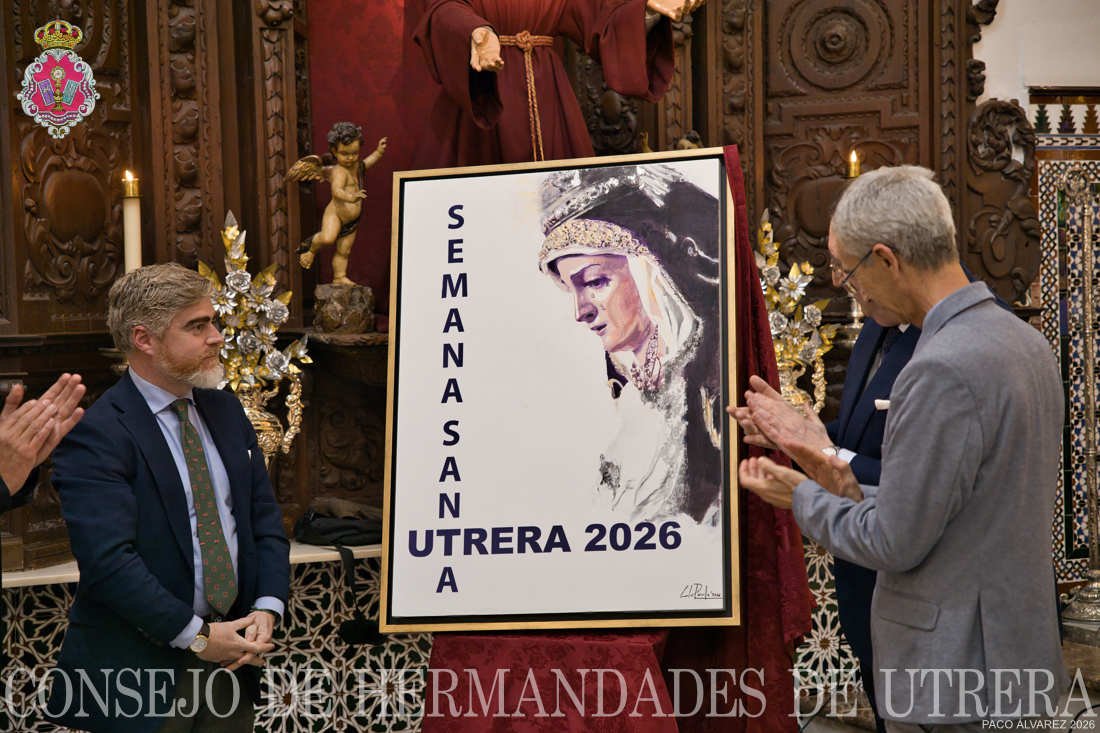 El pasado lunes 16 de febrero, el Consejo de Hermandades y Cofradías de la ciudad de Utrera presentó el cartel de la Semana Santa de Utrera 2026 obra pictórica de D. Carlos Peñuela Jordán.