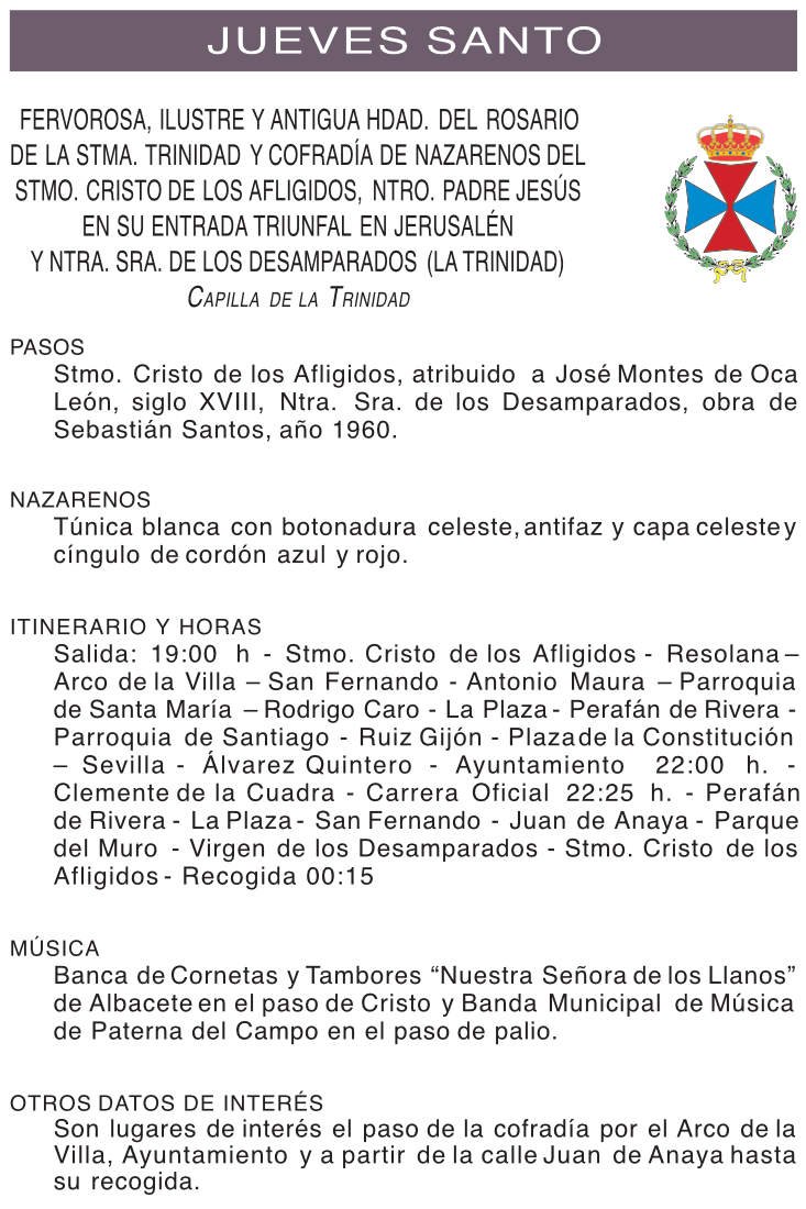 Fervorosa, Ilustre y Antigua Hermandad del Rosario de la Santisima Trinidad y Cofradia de Nazarenos del Stmo. Cristo de los Afligidos, Ntro. Padre Jesus en su Entrada en Jerusalen y Ntra. Sra. de los Desamparados (Trinidad)