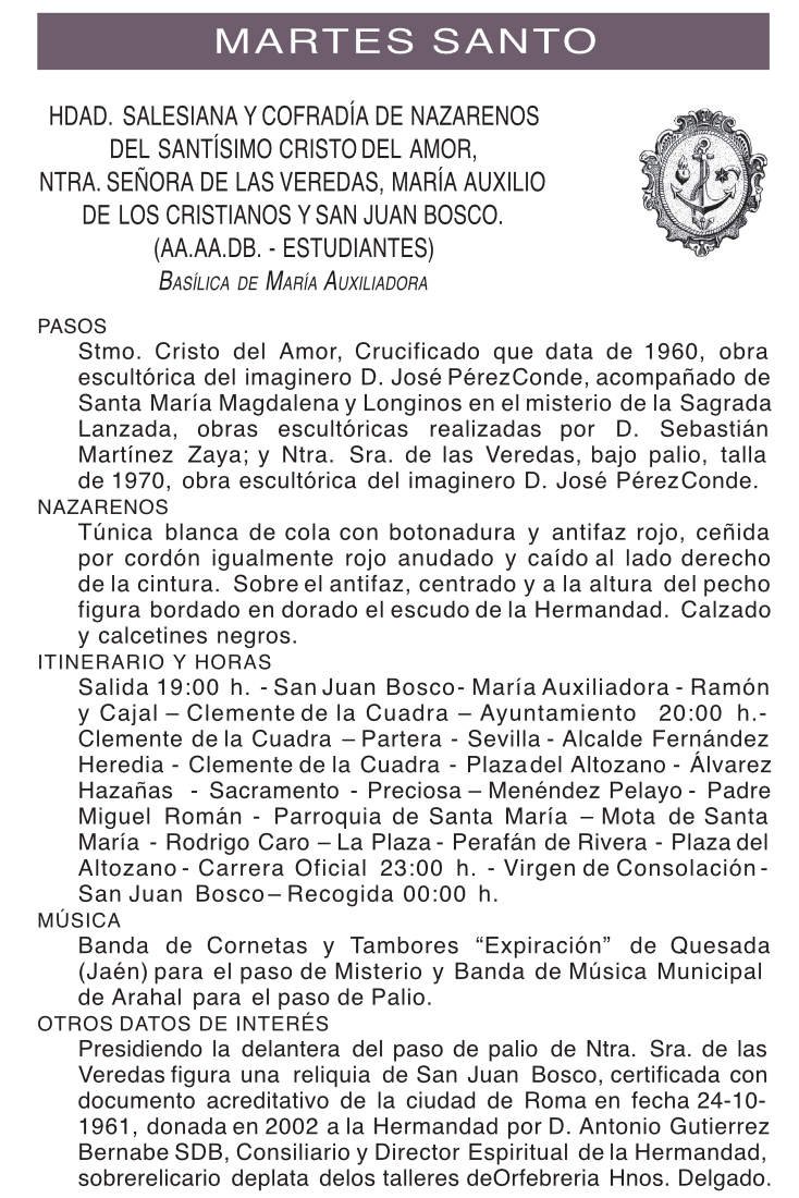 Hermandad Salesiana y Cofradia de Nazarenos del Stmo. Cristo del Amor y Ntra. Sra. de las Veredas, Maria Auxilio de los Cristianos y San Juan Bosco